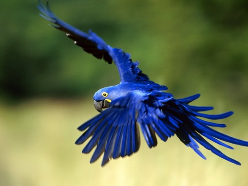The hyacinth macaw can’t dance, roller-skate or ride a unicycle like Big Bird, but he’s still big. The hyacinth macaw weighs in at four pounds, and the world’s largest parrot species also enjoys a tremendous four-foot wingspan. Not only that, but his beak is so strong that it bends the bars of most cages without much effort.